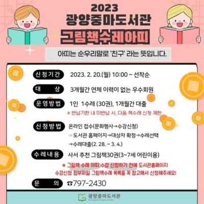 1[µ¿ºÎŸÀÓÁî = ¾çÀçºÀ ±âÀÚ] ±¤¾ç½Ã Á߸¶µµ¼°üÀº ¾ÆÀ̵鿡°Ô Ã¥ Àд Áñ°Å¿ò°ú °¡Á¤ ³» µ¶¼ ºÐÀ§±â È®»êÀ» À§ÇØ ±×¸²Ã¥ ¼ö·¹ ¾Æ¶ì(¡®Ä£ÇÑ Ä£±¸¡¯¸¦ ¶æÇÏ´Â ¼ø ¿ì¸®¸») ¼ºñ½º¸¦ ¿î¿µÇÑ´Ù.