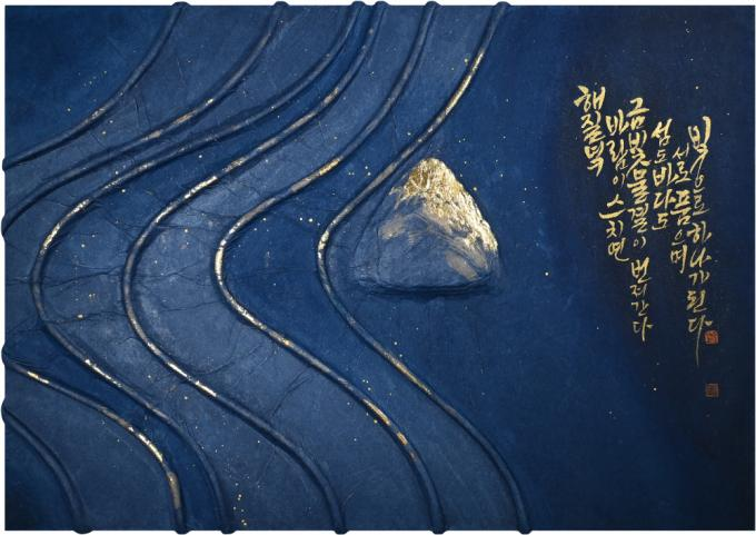 ÀÛǰ Àü¹Ý¿¡´Â ±íÀÌ ÀÖ´Â ÇÑÁö¿Í ±Ý¹Ú, ¸ÔÀÇ ³ó´ãÀÌ ¾î¿ì·¯Áø µ¶Ã¢ÀûÀÎ ±â¹ýÀÌ µ¸º¸ÀδÙ. ¹Ù´Ù¸¦ »ó¡ÇÏ´Â °î¼±ÀÇ È帧°ú ¼¶À» »ó¡ÇÏ´Â ÇüŰ¡ ÇÑ±Û ¼Ã¼·Î ÀÚ¿¬½º·´°Ô À¶ÇյȴÙ. ½ÇÁ¦ È¸È¿Í ¼¿¹, ±×¸®°í Á¶ÇüÀÌ ¸¸³ª´Â ÁöÁ¡¿¡¼ ź»ýÇÏ´Â ¡®¼¶°ú ¹Ù´ÙÀÇ ½Ã(ãÌ)¡¯ °°Àº ÀÛǰµéÀº Àü½ÃÀåÀ» ã´Â À̵鿡°Ô ÇѱÛÀÌ Áö´Ñ ±íÀº »ý¸í·Â°ú ¹ÌÇÐÀû ¾Æ¸§´Ù¿òÀ» ´Ù½Ã±Ý Àϱú¿î´Ù.