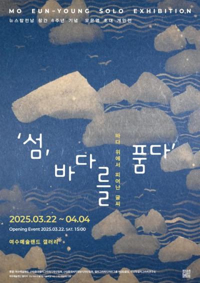 À̹ø Àü½ÃÀÇ ÁÖÁ¦ÀÎ ¡®¼¶, ¹Ù´Ù¸¦ ǰ´Ù: ¹Ù´Ù À§¿¡¼ ÇÇ¾î³ ±Û¾¾¡¯´Â ¿©¼öÀÇ ¾Æ¸§´Ù¿î ¹Ù´Ù¿Í °÷°÷ÀÇ ¼¶µéÀ» ¸ðƼÇÁ·Î, ¼¶ÀÌ Áö´Ñ °íµ¶°ú ¿¬´ë¸¦ ÇÑ±Û Ä¶¸®±×¶óÇÇÀÇ Á¶Çü¹Ì·Î Ç®¾î³½´Ù. ¹Ù´Ù À§¿¡¼ Ȧ·Î ¶° ÀÖ´Â ¼¶Ã³·³ º¸ÀÌÁö¸¸, ¹Ù´å¼ÓÀ¸·Î´Â ¼·Î ¿¬°áµÇ¾î ÀÖµíÀÌ, Àΰ£ ¶ÇÇÑ °ÑÀ¸·Î´Â °í¸³µÇ¾î ÀÖÀ¸³ª º¸ÀÌÁö ¾Ê´Â ±íÀº °÷¿¡¼ ¼·Î ¸Â´ê¾Æ ÀÖ´Ù´Â ¸Þ½ÃÁö¸¦ ÀüÇÑ´Ù.