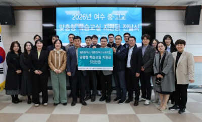 1[µ¿ºÎŸÀÓÁî = ¾çÀçºÀ ±âÀÚ] ¿©¼ö±³À°Áö¿øÃ»Àº 2026³â 3¿ù 26ÀÏ(¸ñ) 15½Ã, ¿©¼ö±³À°Áö¿øÃ» ÁßȸÀǽǿ¡¼ GSĮŨ½º¿Í ÇÔ²² ¡®¸ÂÃãÇü ÇнÀ±³½Ç ¿î¿µ Áö¿ø±Ý Àü´Þ½Ä¡¯À» °³ÃÖÇϰí, Áö¿ª ±³À° Ãë¾à°èÃþ ÇлýµéÀÇ ÇнÀ Áö¿øÀ» À§ÇØ ÃÑ 5õ¸¸ ¿øÀ» Àü´Þ¹Þ¾Ò´Ù.