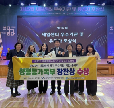 1[µ¿ºÎŸÀÓÁî = ¾çÀçºÀ ±âÀÚ] ¼øÃµ½Ã´Â Áö³ 27ÀÏ ¼¿ï ¸¶Æ÷±¸¿¡¼ ¿¸° ¡®Á¦15ȸ »õÀϼ¾ÅÍ ¿ì¼ö±â°ü ¹× À¯°øÀÚ Æ÷»ó½Ä¡¯¿¡¼ ¼øÃµYWCA¿©¼ºÀη°³¹ß¼¾ÅÍ(°üÀå ±èÇö¹Ì)ÀÇ ¿©¼º»õ·ÎÀÏÇϱ⼾ÅÍ(ÀÌÇÏ ¡®¿©¼º»õÀϼ¾ÅÍ¡¯)°¡ 2025³â Àü±¹ »õÀϼ¾ÅÍ Æò°¡¿¡¼ »óÀ§ 10%ÀÎ Aµî±Þ ¿ì¼ö±â°üÀ¸·Î ¼±Á¤µÇ¸ç, ¡®¼ºÆòµî°¡Á·ºÎ Àå°ü»ó¡¯À» ¼ö»óÇß´Ù°í ¹àÇû´Ù.