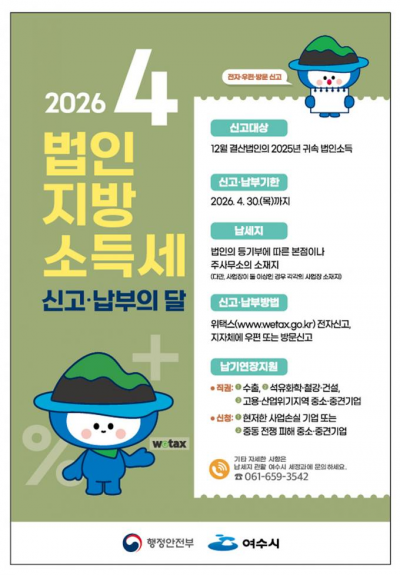 1[µ¿ºÎŸÀÓÁî = ¾çÀçºÀ ±âÀÚ] ¿©¼ö½Ã´Â 4¿ù ÇÑ ´Þ°£ ¡®2025³â ±Í¼Ó ¹ýÀÎÁö¹æ¼Òµæ¼¼¿¡ ´ëÇÑ ÁýÁß ½Å°í¡¤³³ºÎ ±â°£¡¯À» ¿î¿µÇÑ´Ù°í ¹àÇû´Ù.