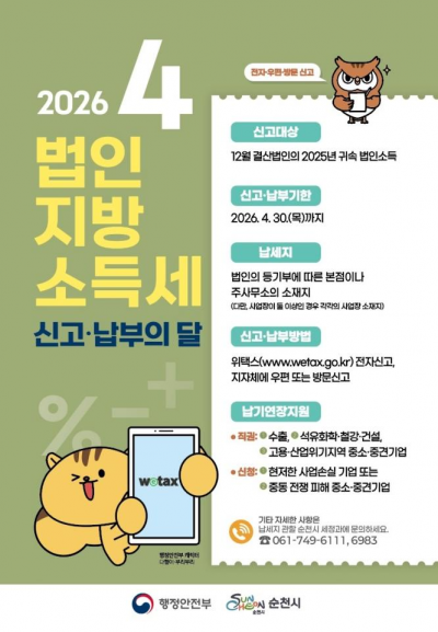 1[µ¿ºÎŸÀÓÁî = ¾çÀçºÀ ±âÀÚ] ¼øÃµ½Ã´Â 4¿ù ÇÑ ´ÞÀ» ¹ýÀÎÁö¹æ¼Òµæ¼¼ ÁýÁß ½Å°í¡¤³³ºÎ ±â°£À¸·Î ¿î¿µÇϸç, °ü³» ¹ýÀεéÀº 4¿ù 30ÀϱîÁö ½Å°í¡¤³³ºÎ¸¦ ¿Ï·áÇØ ÁÙ °ÍÀ» ´çºÎÇß´Ù.
